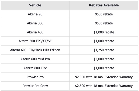 Save up to $2,500 on qualifying Off Road models! Additional terms and conditions apply.